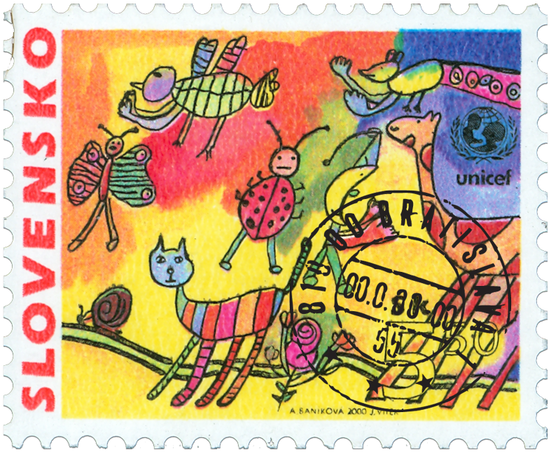 Ministerstvo dopravy, pôšt a telekomunikácií SR vydalo dňa 1. 6. 2000 príležitostnú poštovú známku "Detská známka - UNICEF" s nominálnou hodnotou 5,50 Sk. Na známke je reprodukovaná kresba Zvieratká z dúhy detskej autorky Alexandry Baníkovej. Ilustráciu dopĺňa logo Detského fondu OSN UNICEF. Grafická úprava emisie Martin Činovský. Rytinu známky vytvoril Juraj Vitek. Viacfarebnú známku o rozmeroch obrazovej časti 30 x 23 mm (na šírku) vytlačila Poštovní tiskárna cenin Praha, a.s., technikou rotačnej oceľotlače v kombinácii s hĺbkotlačou na tlačových listoch po 50 známkach. Súčasne bola vydaná obálka prvého dňa vydania vrátane príležitostnej pečiatky s domicilom Detva. Na pečiatke je použitá kresba...