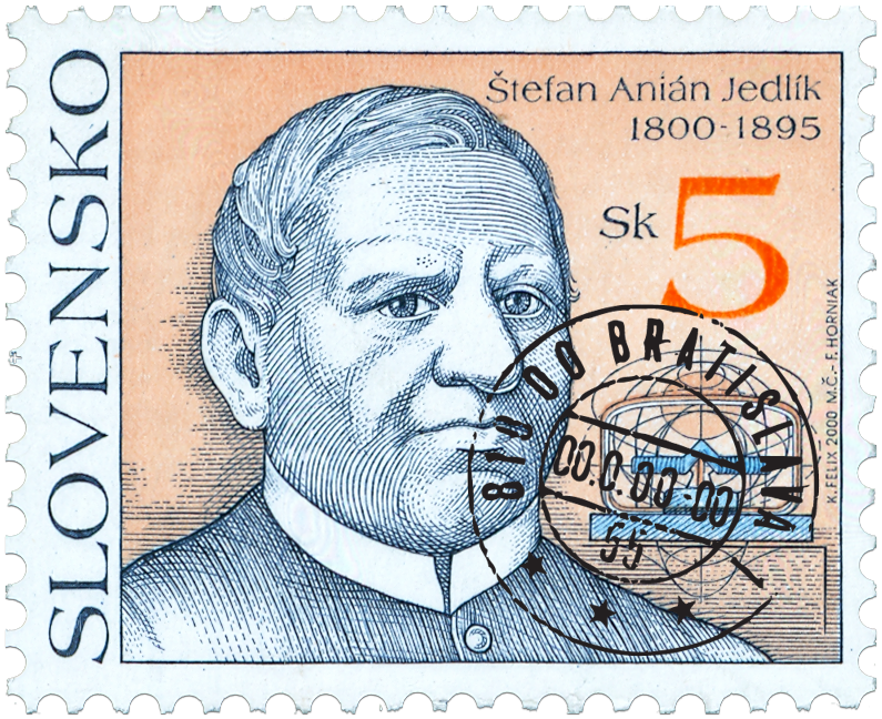 Ministerstvo dopravy, pôšt a telekomunikácií SR vydalo dňa 11. 1. 2000 príležitostnú poštovú známky z emisného radu Osobnosti - Štefan Anián Jedlík v nominálnej hodnote 5 Sk. Na známke je dominujúcim motívom portrét osobnosti, doplnený o príslušný text. Autorom výtvarných návrhov emisie je akad. maliar Karol Felix. Rytinu zámky Jedlíka na základe líniovej rozkresby akad. maliara Martina Činovského vytvoril František Horniak. Viacfarebnú známku s rozmermi obrazovej časti 30 x 23 mm (na šírku) vytlačila Poštovní tiskárna cenin Praha, a.s., technikou rotačnej oceľotlače v kombinácii s hĺbkotlačou na tlačových listoch po 50 známkach. Súčasne bola vydaná obálka prvého dňa vydania. Je na...