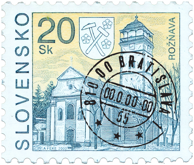 Ministerstvo dopravy, pôšt a telekomunikácií SR vydalo dňa 26. 7. 2000 bežnú výplatnú poštovú známku "Rožňava" s nominálnou hodnotou 20 Sk. Na známke je strážna veža - dominanta historického jadra mesta a mestský erb. Autorom výtvarných návrhov a rytcom emisie je Arnold Feke. Dvojfarebnú známku o rozmeroch obrazovej časti 23 x 19 mm (na šírku) vytlačila Poštovní tiskárna cenin Praha, a.s., technikou rotačnej oceľotlače v kombinácii s hĺbkotlačou na tlačových listoch po 100 ks známok. Súčasne bola vydaná obálka prvého dňa vydania vrátane príležitostnej pečiatky s domicilom Rožňava. Na FDC je detail rytiny mesta Rožňava z roku 1828. FDC vytlačila uvedená...