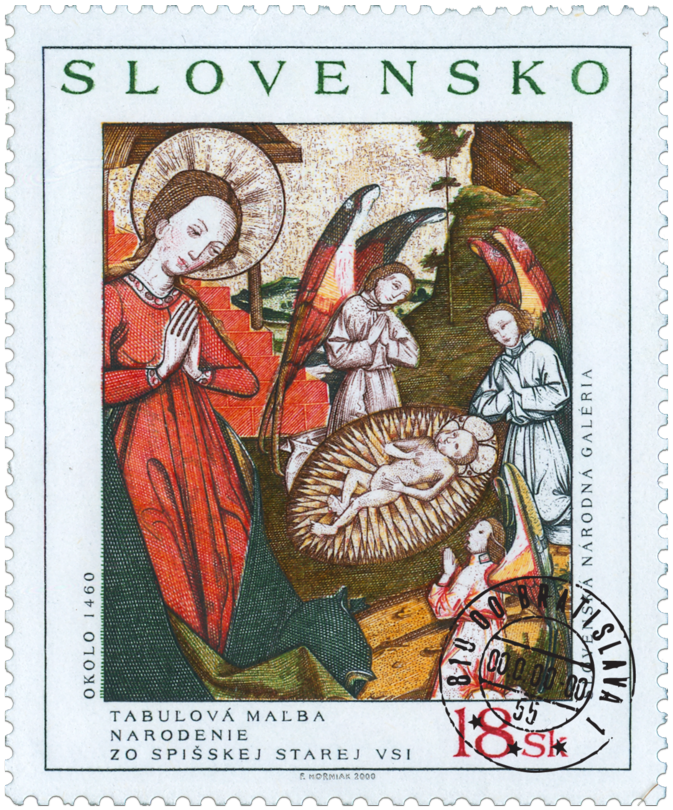 Ministerstvo dopravy, pôšt a telekomunikácií SR vydalo dňa 17.10.2000 príležitostnú poštovú známku série Umenie reprodukujúcu gotickú tabuľovú maľbu "Narodenie" pochádzajúcu z kostola v Spišskej Starej Vsi (v majetku Slovenskej národnej galérie) s nominálnou hodnotou 18 Sk. Ryteckú transkripciu diela vytvoril František Horniak. Viacfarebnú známku o rozmeroch obrazovej časti 40 x 50 mm (na výšku) vytlačila Poštovní tiskárna cenin Praha, a.s., technikou 5-farebnej oceľotlače z plochých platní na tlačových listoch so 4 známkami a nepotlačeným kupónom. Súčasne bola vydaná obálka prvého dňa vydania vrátane príležitostnej pečiatky s domicilom Spišská Stará Ves. Na FDC je výrez z oltárnej tabule. Rytec FDC a autor...