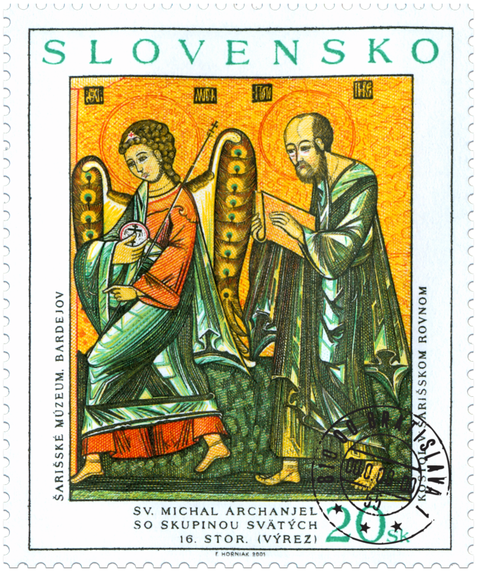 Ikona z východného Slovenska: Sv. Michal archanjel so skupinou svätých Číslo emisie