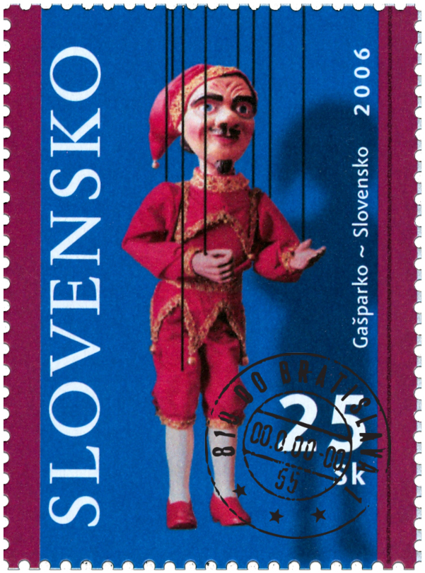 © Slovenská pošta, a. s., 2006 Rôzne komické postavy, ktoré sa dajú dokázať v bábkovom divadle v Európe už v 13.-14.storočí, vyúsťujú časom v jedinú postavu – v stredovekého šaša. Po zrode tradície commedie dell´arte v 14. storočí v Taliansku sa dostáva do viacerých európskych zemí a pomaly sa prispôsobuje miestnym pomerom. Každý národ mu pridáva niečo zo svojej prirodzenosti, prostredia, vzdelania. Na Slovensku sa ako Gašparko stal najtypickejšou postavou tradičného bábkového divadla. Zo všetkých svojich európskych bratov je Gašparko najlyrickejší, najjemnejší, najmenej vulgárny a má cit pre spravodlivosť. Možno to spôsobil dlhoročný útlak slovenského národa, ktorého jedinou útechou boli len...