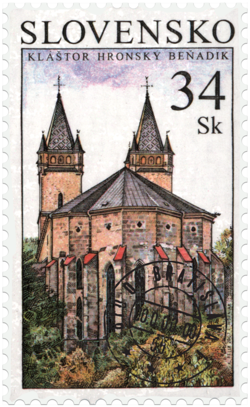 © Slovenská pošta, a .s., 2007 K najväčším a najbohatším opátstvam benediktínov na Slovensku patrilo opátstvo v Hronskom Beňadiku. Vzniklo v údolí Hrona pri prastarej ceste spájajúcej Nitru so Zvolenom a banskými lokalitami, pričom až do 16. storočia plnilo funkciu stredovekého notárstva (tzv. hodnoverné miesto). Prvá románska trojloďová bazilika bola vysvätená v roku 1075 kráľom Gejzom I. Na mieste starého kláštorného komplexu vybudovali v rokoch 1346 – 1375 dvojvežový gotický kostol. Dnešnú trojloďovú halu s polygonálne uzavretým presbytériom obnovili po požiari v 15. storočí. Pri výstavbe kostola staviteľ uplatnil gotickú skeletovú konštrukciu Trojlodie, delené bohato profilovanými piliermi, má krížové klenby. Na...