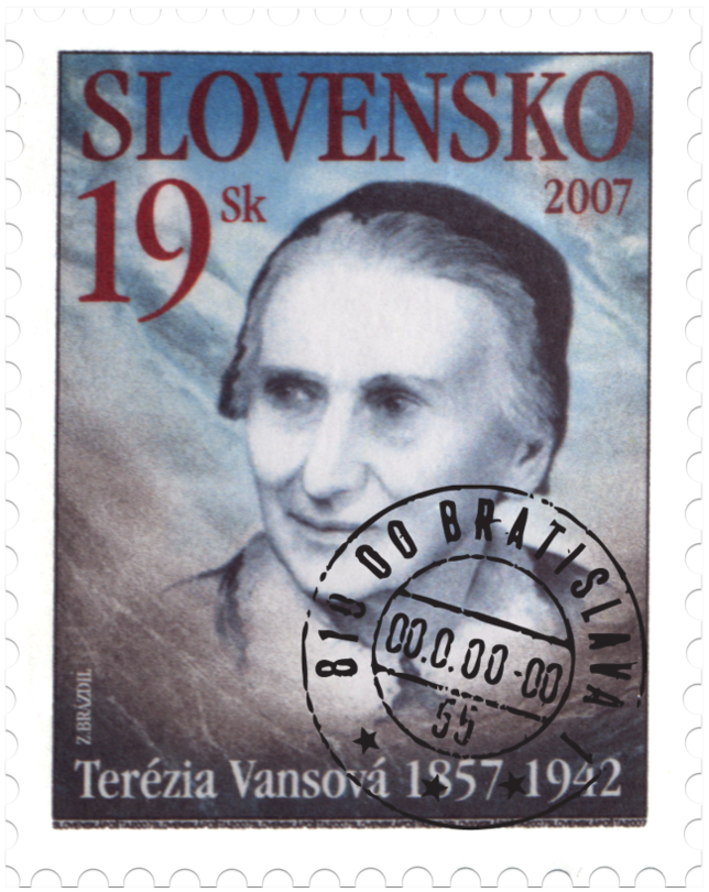 © Slovenská pošta, a . s., 2007 Terézia Vansová - verejne činná, tvorivá žena, ktorá spoluvytvárala kultúrny a spoločenský život Slovenska na konci 19. storočia - sa narodila v roku 1857 v národne uvedomelej rodine evanjelického farára Samuela Medveckého. Študovala v rodnej Zvolenskej Slatine, v Banskej Bystrici a v Rimavskej Sobote. Roky prežité v jej novom domove, ktorým sa po vydaji za evanjelického farára Jána Vansu stala Lomnička a neskôr Rimavská Píla, sú základom realisticky spracovaných spomienok na život v dedinských školách a na farách. Jej román Sirota Podhradských, vydaný v roku 1889, je prvým slovenským románom napísaným ženskou autorkou, za...