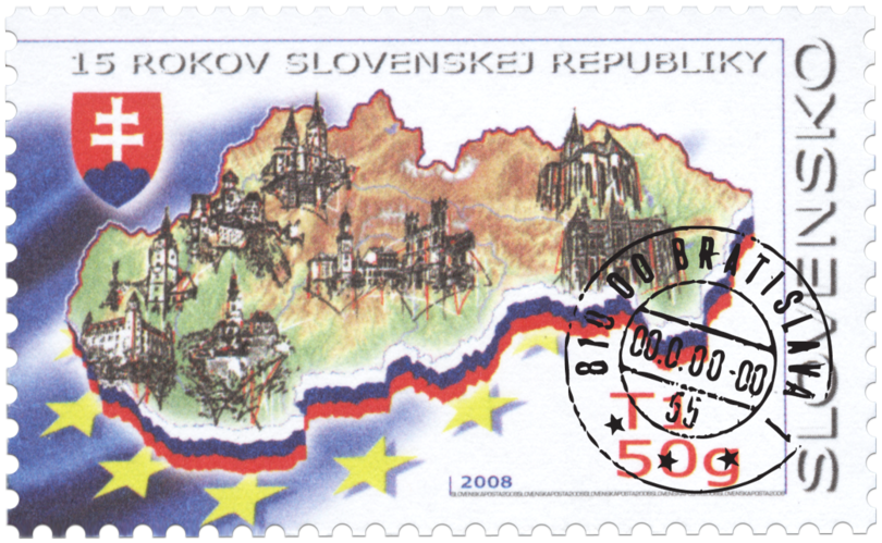 Označenie T1 50 g zodpovedá tarife pre list 1. triedy do 50 g v tuzemskom styku. © Slovenská pošta, a . s., 2008 Samostatná a suverénna Slovenská republika patrí k najmladším štátom sveta, hoci Slováci patria k najstarším obyvateľom Európy. V dôsledku nepriaznivých geopolitických a historických okolností svoju suverénnu a nezávislú štátnosť dosiahli až 1. januára 1993, teda pred 15 rokmi. Predkovia dnešných Slovákov kompaktne a nepretržito obývali územie dnešného Slovenska od konca 5. storočia. V 9. storočí vytvorili silný ranofeudálny štát, v ktorom boli položené základy štátnosti viacerých stredoeurópskych národov a základy slovanskej kultúry a literatúry. Tento štát na začiatku...