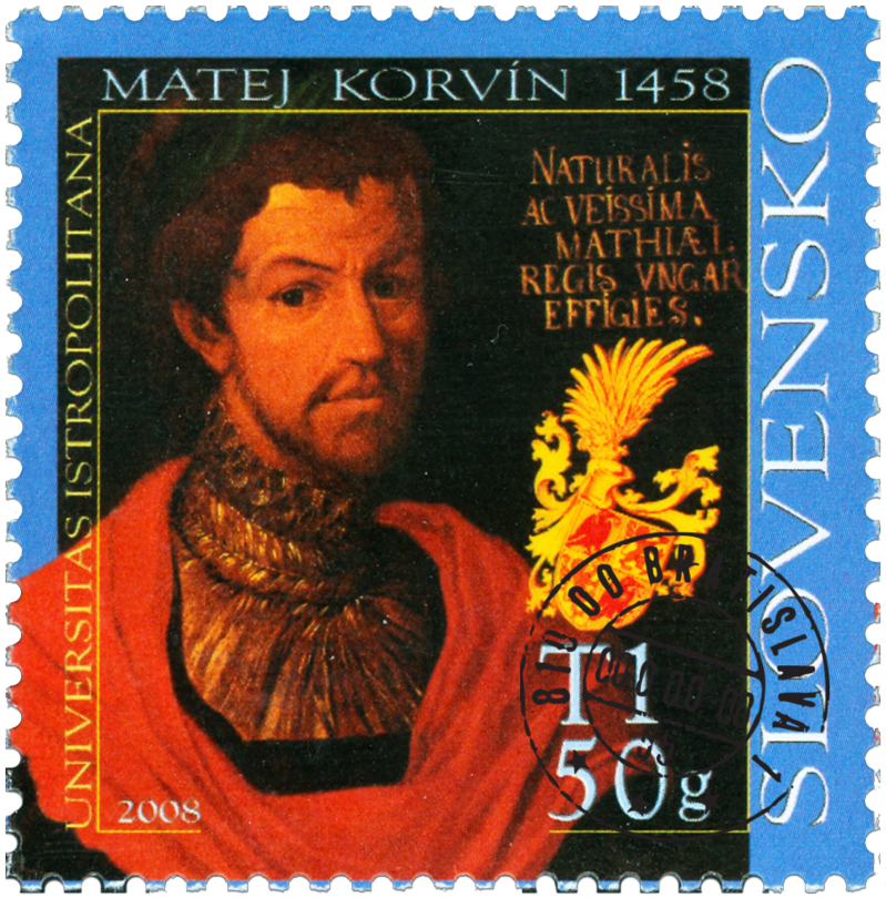Označenie T1 50g zodpovedá tarife pre list 1. triedy do 50 g v tuzemskom styku. © Slovenská pošta, a . s., 2008 V roku 2008 si Slovenská pošta, a.s. pripomína 550 výročie korunovania Mateja Korvína (* 23. 2. 1443, † 6. 4. 1490) uhorským kráľom v roku 1458. Práve na žiadosť tohto panovníka bola v roku 1465 v Bratislave založená prvá univerzita na území Slovenska  Universitas Istropolitana, ktorej dodnes stojaca budova postavená v neskorogotickom štýle je sídlom Vysokej školy múzických umení. Matej bol synom uhorského guvernéra Jána Huňadyho a epitetum Corvinus mu pridelil jeho životopisec, renesančný vzdelanec pôsobiaci na jeho...