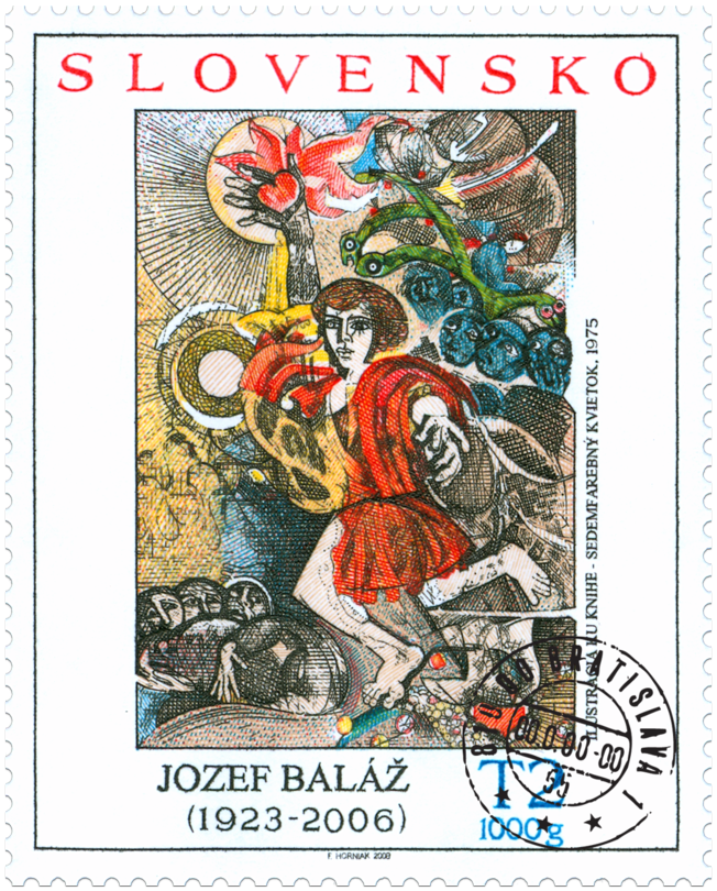 Označenie T2 1000g zodpovedá tarife pre list 2. triedy do 1000 g v tuzemskom styku. © Slovenská pošta, a. s., 2008 Jozef Baláž (14. 3. 1923 – 6. 7. 2006) akademický maliar, grafik, ilustrátor, nestor slovenskej známkovej tvorby, zaslúžilý umelec, významná osobnosť slovenského umeleckého a kultúrneho života. Odchovanec osobností slovenského výtvarného umenia Jána Mudrocha, Gustáva Mallého, Jozefa Kostku, Kolomana Sokola a Dezidera Millyho ukončil v roku 1954 štúdiá na Akadémii výtvarných umení v Sofii u profesora Ilju Beškova. Vyzretým umeleckým prejavom vstúpil do výtvarného diania. Stal sa členom tvorivých skupín Život a Klub grafikov. Bol Čestným členom Zväzu bulharských výtvarných umelcov...