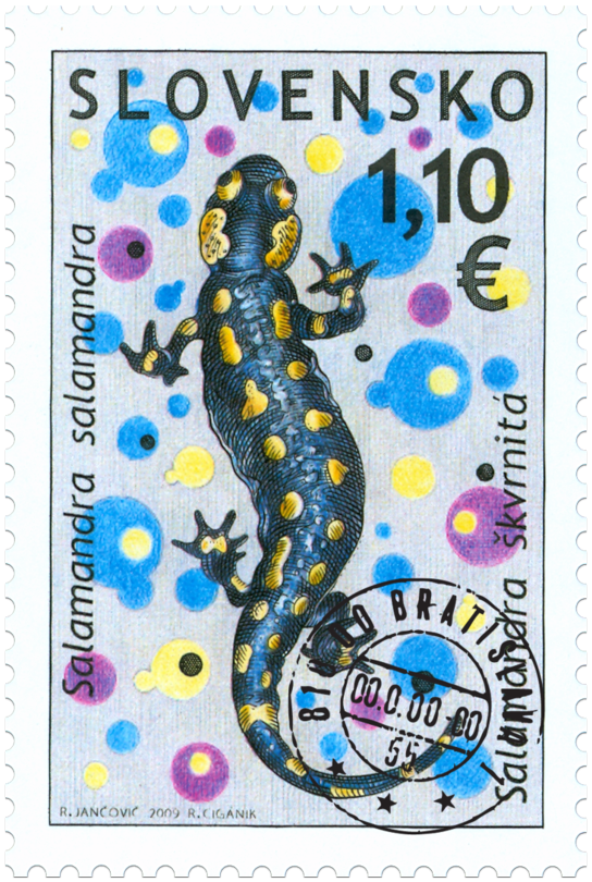 Salamandra škvrnitá je našim najväčším mlokom, ktorý u nás dosahuje veľkosť 20 v južnej Európe až 30 centimetrov. Má širokú hlavu a robustné valcovité telo ukončené chvostom. Hladká koža má množstvo pórov, v ktorých vyúsťujú jedové žľazy, na ktoré upozorňuje výstražné sfarbenie – čierne telo s množstvom variabilných žlto-oranžových škvŕn. Spôsobom života sa výrazne odlišuje od ostatných našich druhov obojživelníkov. Salamandra je nočný živočích, viazaný na listnaté najmä dubové a bukové lesy pahorkatín a pohorí. V ihličnatých lesoch je veľmi zriedkavá. Na Slovensku sa vyskytuje až do nadmorských výšok 1000 m. n. m. Počas dňa sa ukrýva v lístí, pod pňami...
