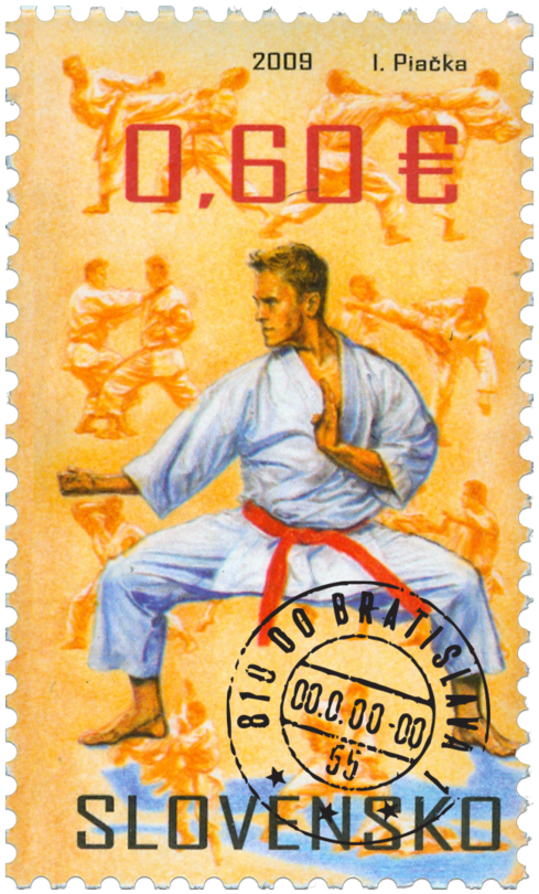© Slovenská pošta, a. s., 2009 Bojové umenie predstavuje rozsiahly komplex používaných techník, ktoré v závislosti od štýlu, školy, tradície a iných určujúcich prvkov vytvárajú jeho charakter. Džudo, iaido, kendo, aikido a iné, všetky majú v súčasnosti prinajmenej dve podoby. To platí aj pre karate, ktoré je výtvarným motívom pre známku, ale aj pre celú emisiu bojové umenie. Súčasné karate, ktoré má dnes zväčša len športový charakter, sa vyvinulo z tradičnej formy okinawského tode. Treba mať však na pamäti, že i tento tradičný spôsob boja má svojich historických predchodcov. Či už to bol grécky „pankratión“, indický „vajramušti alebo čínsky „čuan fa&ldquo...