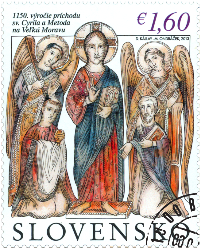 1150. výročie príchodu sv. Cyrila a Metoda na Veľkú Moravu. Spoločné vydanie s Českou republikou, Vatikánom a Bulharskom Číslo emisie