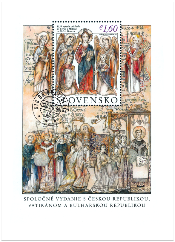 1150. výročie príchodu sv. Cyrila a Metoda na Veľkú Moravu. Spoločné vydanie s Českou republikou, Vatikánom a Bulharskom