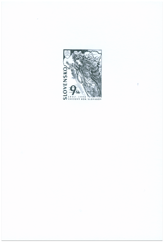 Príležitostná tlač ako 019 PT 123/97 s prítlačou reliéfnej tlače štátneho znaku a nápisu "Poštová známka a Slovensko"