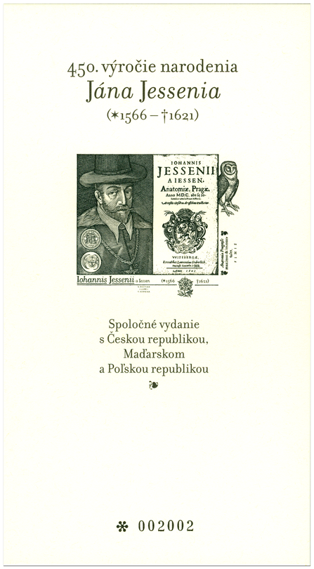 450. výročie narodenia Jána Jessenia (1566 – 1621). Spoločné vydanie s Českou republikou, Maďarskom a Poľskou republikou Číslo emisie