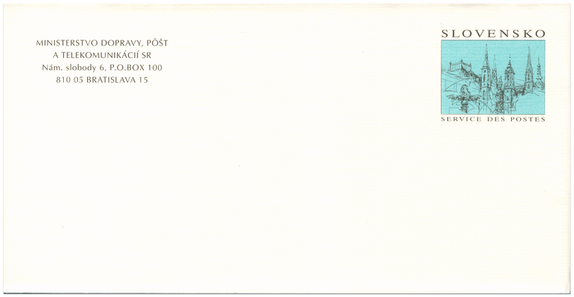 Natlačená známka bez nominálnej hodnoty s textom Post des services, prítlač "MDPT SR"