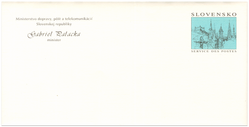 Natlečená známka bez nominálnej hodnoty s textom Service des postes, prítlač "Gabriel Palacka, minister"