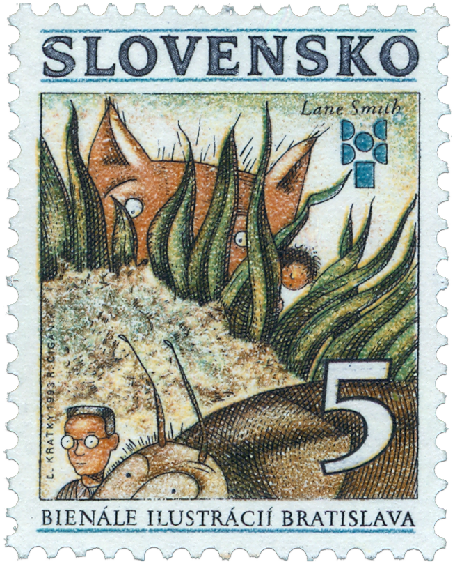 Ministerstvo dopravy, spojov a verejných prác Slovenskej republiky vydalo dňa 2.9.l993 príležitostnú poštovú známku "Bienále ilustrácií Bratislava" s nominálnou hodnotou 5 Sk. Na známke je zreprodukovaná ilustrácia výtvarníka Lane Smitha z publikácie " The Big Pets" ( vydavateľstvo Viking, New York 1991). Ilustrácie boli ocenené Zlatým jablkom BIB '91. Autorom grafickej úpravy známky je Ľubomír Krátky, autorom ryteckej rozkresby a rytiny je akademický maliar Rudo Cigánik. Známku veľkosti 23x30 mm vytlačila Poštová tlačiareň cenín, Praha, a.s. rotačnou oceľotlačou v kombinácii s hĺbkotlačou, viacfarebne, na tlačových listoch po 50 kusoch. Známka platí v tuzemskom i medzinárodnom styku od 2.9.1993 až do odvolania...