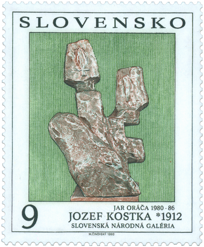 Ministerstvo dopravy, spojov a verejných prác vydalo dňa 31. 12. 1993 príležitostnú známku "Jozef Kostka: Jar oráča" , zo série Umenie na poštových známkach, v nominálnej hodnote 9 Sk. Plastika z majetku Slovenskej národnej galérie je vyobrazená na zelenom pozadí, popis diela je v spodnej časti známky. Autorom grafickej úpravy známky a rytiny je akad. maliar Martin Činovský. Známku rozmerov obrazovej časti 40 x 50 mm vytlačila 4-farebnou oceľotlačou z plochých platní PTC, a.s. Praha. Známka platí v tuzemskom a zahraničnom poštovom styku od 31. 12. 1993 až do odvolania. Jozef Kostka (29.1.1912 Stupava - 30.9.1996 Bratislava) ako sochár bol významným...
