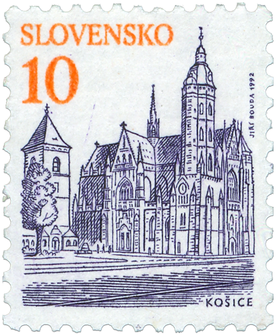 Ministerstvo dopravy, spojov a verejných prác SR vydalo v sérii mestá dňa 31.1.1993 výplatnú známku "KOŠICE" s nominálnou hodnotou 10 Sk. Farba: fialovomodrá, oranžová Autorom výtvarného návrhu známky, ktorej námetom je hlavná časť historického jadra mesta Košice, ryteckej rozkresby a rytiny známky je akademický maliar Jiří Bouda. Známku veľkosti 19x23 mm na výšku vytlačila Poštová tlačiareň cenín Praha a.s. rotačnou oceľotlačou v kombinácii s hĺbkotlačou na tlačových listoch po 100 kusoch. Komplex Dómu sv. Alžbety v Košiciach (národná kultúrna pamiatka) pozostáva z Dómu, Kaplnky sv. Michala a Urbanovej veže. Dóm bol budovaný v rokoch 1345 až 1508, v rokoch 1877 a...