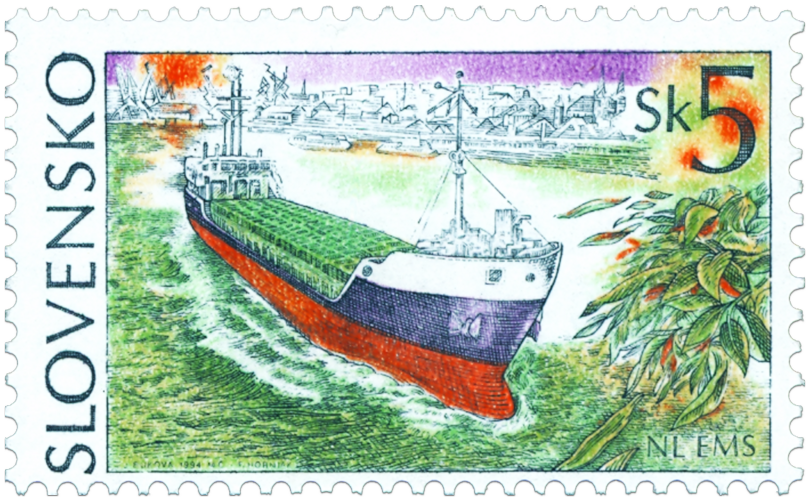 Ministerstvo dopravy, spojov a verejných prác vydalo dňa 30. 12. 1994 tri príležitostné poštové známky v sérii "Lode": 5 Sk - nákladná loď typ EMS (NL EMS - označenie typu plavidla uvedené v pravom dolnom rohu známky) 8 Sk - nákladná loď typ Rýn ( označenie NL Rýn) 10 Sk - osobná loď pre 400 pasažierov (označenie OL 400) Výtvarníčkou emisie je akad. maliarka Júlia Buková, rytecké rozkresby vytvoril akad. maliar Martin Činovský. Rytiny vytvorili František Horniak (5 Sk), akad. maliar Rudolf Cigánik (8 Sk) a akad. maliar Martin Činovský (10 Sk). Viacfarebné známky rozmerov obrazovej časti 40 x 23 na...