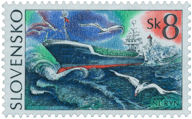Ministerstvo dopravy, spojov a verejných prác vydalo dňa 30. 12. 1994 tri príležitostné poštové známky v sérii "Lode": 5 Sk - nákladná loď typ EMS (NL EMS - označenie typu plavidla uvedené v pravom dolnom rohu známky) 8 Sk - nákladná loď typ Rýn ( označenie NL Rýn) 10 Sk - osobná loď pre 400 pasažierov (označenie OL 400) Výtvarníčkou emisie je akad. maliarka Júlia Buková, rytecké rozkresby vytvoril akad. maliar Martin Činovský. Rytiny vytvorili František Horniak (5 Sk), akad. maliar Rudolf Cigánik (8 Sk) a akad. maliar Martin Činovský (10 Sk). Viacfarebné známky rozmerov obrazovej časti 40 x 23 na...