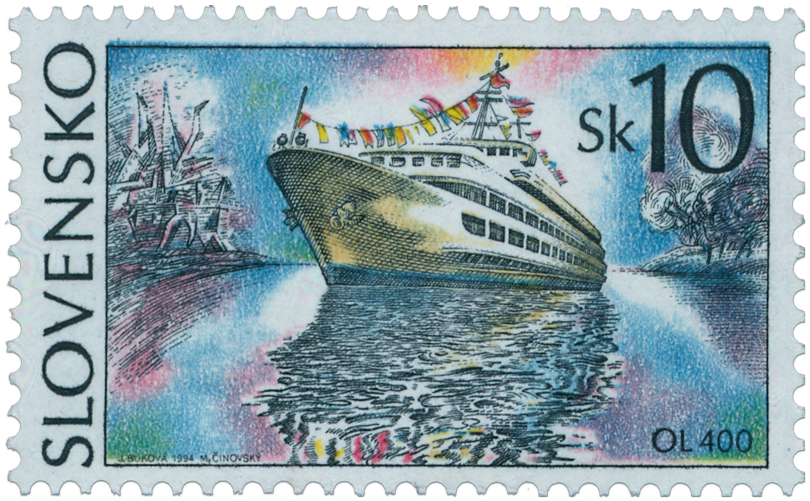 Ministerstvo dopravy, spojov a verejných prác vydalo dňa 30.12.1994 tri príležitostné poštové známky v sérii "Lode": 5 Sk - nákladná loď typ EMS (NL EMS - označenie typu plavidla uvedené v pravom dolnom rohu známky) 8 Sk - nákladná loď typ Rýn ( označenie NL Rýn) 10 Sk - osobná loď pre 400 pasažierov (označenie OL 400) Výtvarníčkou emisie je akad. maliarka Júlia Buková, rytecké rozkresby vytvoril akad. maliar Martin Činovský. Rytiny vytvorili František Horniak (5 Sk), akad. maliar Rudolf Cigánik (8 Sk) a akad. maliar Martin Činovský (10 Sk). Viacfarebné známky rozmerov obrazovej časti 40 x 23 na šírku vytlačila...