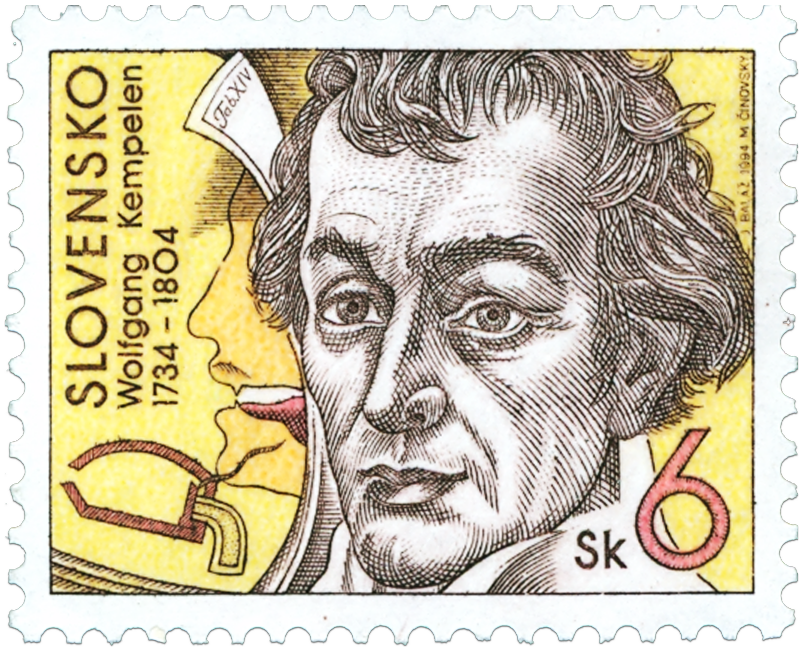 Ministerstvo dopravy, spojov a verejných prác vydalo dňa 12. 12. 1994 príležitostnú poštovú známku "Wolfgang Kempelen" (1734-1804) zo série Osobnosti v nominálnej hodnote 6 Sk. Známka s portrétom tohto významného vynálezcu a mechanika je doplnená časťou ilustrácie z Kempelenovej štúdie ľudskej reči. Autorom známky je akad. maliar Jozef Baláž. Rytinu vytvoril akad. maliar Martin Činovský. Známku vytlačila Poštovní tiskárna cenin, a.s., Praha rotačnou oceľotlačou v kombinácii s hĺbkotlačou v náklade 3 000 000 ks. Wolfgang Kempelen (23.1.1734 Bratislava - 26.3.1804 Viedeň) - polytechnik, mechanik, vynálezca, direktor soľných baní v Sedmohradsku, radca Uhorskej sedmohradskej kancelárie vo Viedni. V roku 1778 zostrojil hovoriaci...