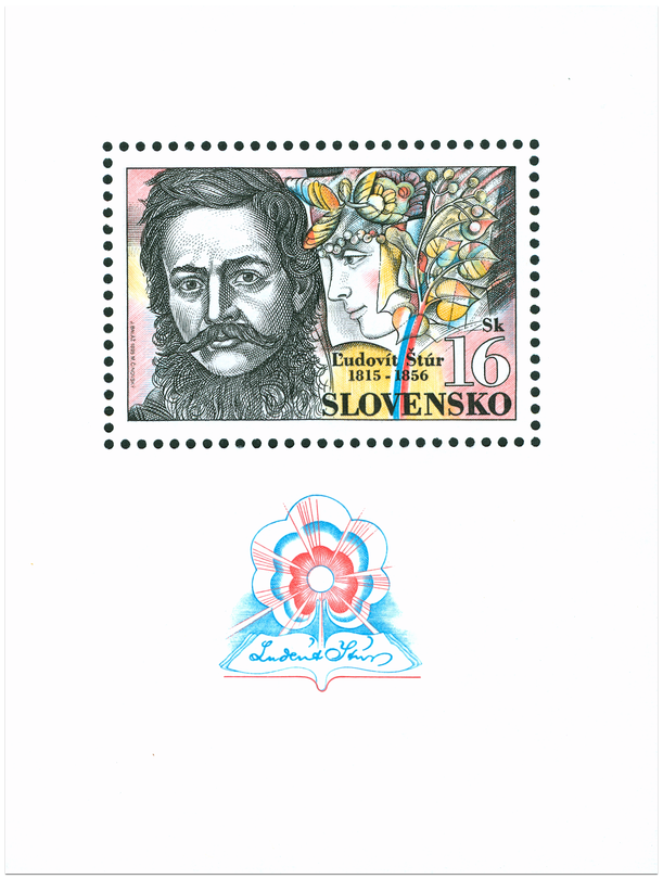 Ministerstvo dopravy, spojov a verejných prác vydalo dňa 20. 4. 1995 príležitostnú poštovú známku "Ľudovít Štúr" v hárčekovej úprave v nominálnej hodnote 16 Sk. Ľudovít Štúr (1815-1856) - vedúca osobnosť slovenského národného obrodenia, jazykovedec, kodifikátor spisovnej slovenčiny. R. 1837-38 a 1840-43 pedagóg ev.lýcea v Bratislave. Filozoficko - historickými prednáškami zintenzívnil vlastenecké nadšenie mladej slovenskej inteligencie, ktorá dostala po ňom pomenovanie štúrovci. R. 1846 v spise Nárečja slovenskuo alebo potreba písaňja v tomto nárečí zdôvodnil kodifikáciu nového celonárodného spisovného jazyka a dielom Náuka reči slovenskej mu dal pevnú gramatickú stavbu. Vydávaním Slovenských národných novín, požadovaním reforiem na uhorskom sneme v Bratislave, národnoobrannou...