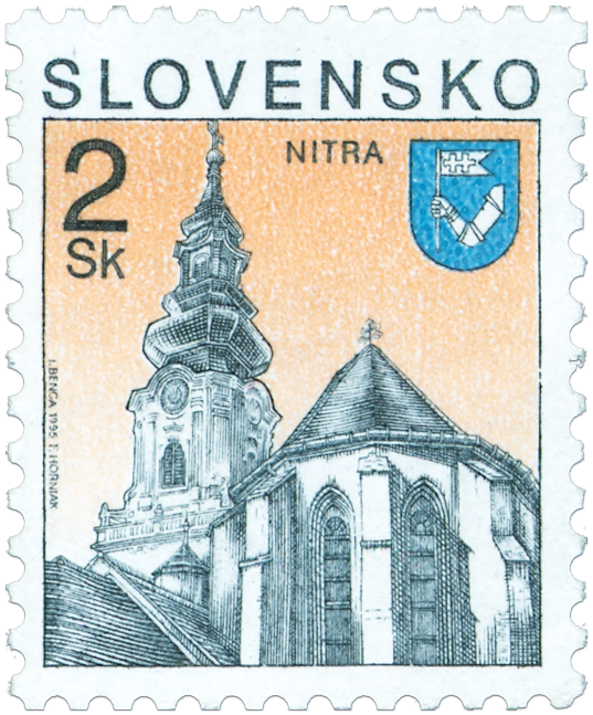 Ministerstvo dopravy, spojov a verejných prác vydalo dňa 15. 3. 1995 výplatnú poštovú známku "Nitra" v nominálnej hodnote 2 Sk. Nitra, významná archeologická lokalita, jedno z hlavných politických a hospodárskych centier Veľkej Moravy, sídlo Nitrianskeho kniežatstva, Svätopluka, biskupstva, kapituly a benediktínskeho kláštora na Zobore, pri ktorom bola zriadená najstaršia škola na Slovensku. Výsady slobodného kráľovského mesta jej udelil Belo IV. r. 1248. Hrad pochádza z 11. stor., goticky bol prestavaný v 15. stor. Najstaršou časťou hradu je Vazilova veža a románska rotunda sv. Emerama z 12. stor. Gotický Horný kostol - katedrála sv. Emerama je z r. 1333-55. Hradný areál a...