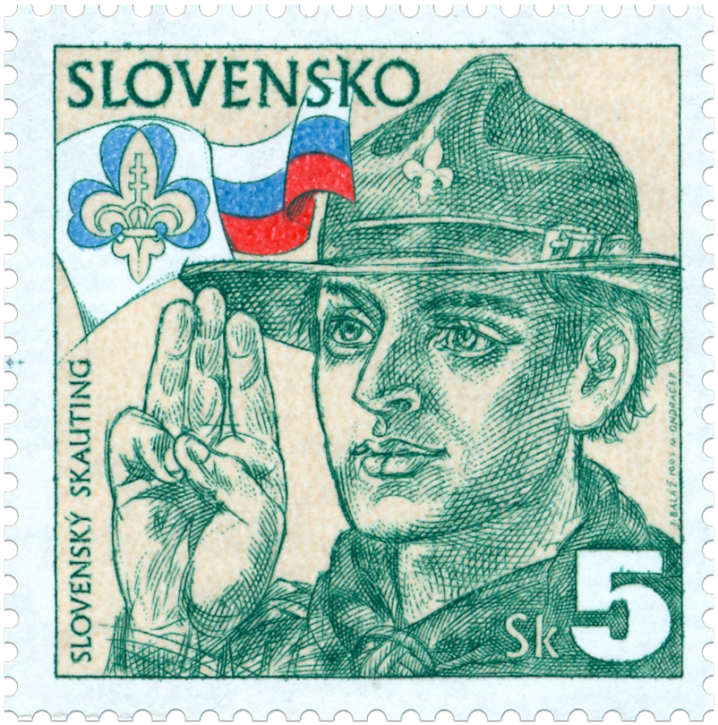 Ministerstvo dopravy, pôšt a telekomunikácií vydalo dňa 18. 5.1995 príležitostnú poštovú známku "Slovenský skauting" v nominálnej hodnote 5 Sk. Skautské hnutie je dobrovoľné, nepolitické, vychovávajúce mladých ľudí, prístupné všetkým bez rozdielu pôvodu, národnosti, rasy alebo náboženstva v súlade s cieľom, princípami a metódami stanovenými zakladateľom hnutia Robertom Baden-Powellom. Prvé slovenské skautské oddiely boli založené na jar roku 1919, 75.výročie svojho vzniku oslávil Slovenský skauting v roku 1994. 18. svetové stretnutie skautov - Jamboree - sa uskutočnilo v auguste 1995 v Holandsku. Známka je s dominujúcou kresbou skauta v zelenej farbe a červeno-modrým doplňujúcim motívom trikolóry a znaku Slovenského skautingu. Známka platí...