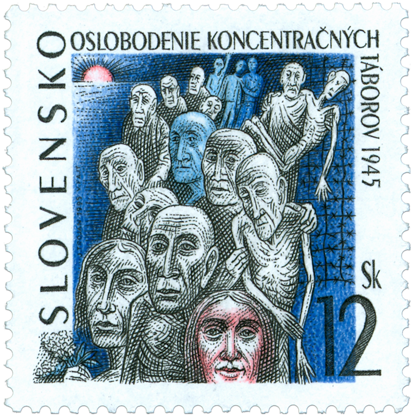 Ministerstvo dopravy, pôšt a telekomunikácií vydalo dňa 5. 5. 1995 príležitostnú poštovú známku "Výročie oslobodenia koncentračných táborov" v nominálnej hodnote 12 Sk. Spolu s 50. výročím skončenia 2. svetovej vojny a víťazstva nad fašizmom si celý svet pripomína aj 50. výročie oslobodenia nacistických koncentračných táborov. Kataklyzma vojny a kataklyzma holokaustu majú spoločné korene. Vytvorenie prvých nacistických koncentračných táborov ihneď po Hitlerovom nástupe k moci dávalo tušiť, že sú neklamnou predzvesťou azda najtragickejšej vojny v dejinách ľudstva. Spomienka na obete vykynožovacích koncentračných táborov nás zaväzuje a vydanie takejto príležitostnej známky je prejavom toho, že naša mladá Slovenská republika si túto záväznosť uvedomuje...