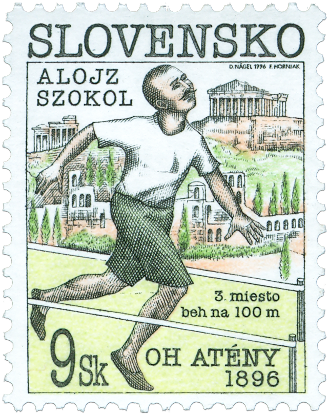 Ministerstvo dopravy, pôšt a telekomunikácií vydalo dňa 15.2.1996 príležitostnú poštovú známku "100 rokov olympijských hier - Alojz Szokol" o nominálnej hodnote 9 Sk. Na známke s postavou bežca a aténskou Akropolou (vo farebnosti čierna - kresba, bledozelená a okrová - pozadie) sú texty: OH Atény, Alojz Szokol, 3. miesto, beh na 100 m. Prvým slovenským olympionikom sa stal Alojz Szokol, rodák z Hronca. Na Hrách I. olympiády nového veku obsadil v r. 1896 v Aténach 3. miesto v behu na 100 m časom 12,6 s. Pre reprezentáciu Uhorska získal i 4. miesto v trojskoku. Tento všestranný atlét však dosahoval veľmi dobré...