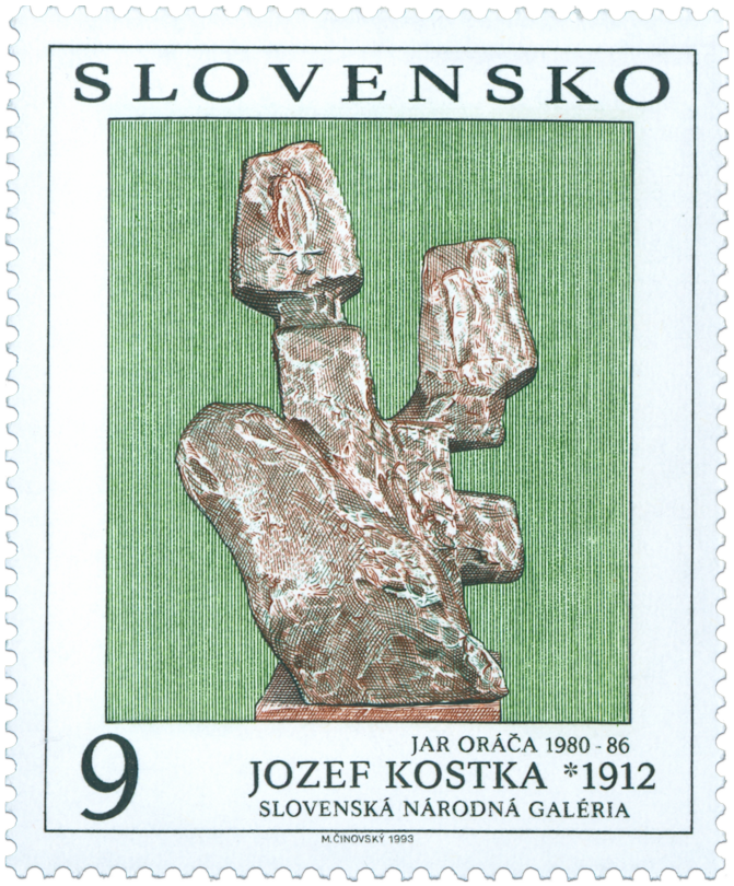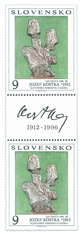 Ministerstvo dopravy, pôšt a telekomunikácií vydalo dňa 13.11.1996 prítlač na kupón príležitostnej poštovej známky "Jozef. Kostka: Jar oráča", (známka č. 24, vydaná 31.12.1993 pôvodne s nepotlačeným kupónom, formát známky 44,4 x 54,4 mm, formát kupóna 44,4 x 27,2 mm, v série Umenie) o nominálnej hodnote 9 Sk . Emisia s potlačeným kupónom je realizovaná v podobe zvislej spojky (známka, kupón, známka nad sebou). Prítlačový motív na kupóne je reprodukciou podpisu prof. Jozefa Kostku, autora plastiky zobrazenej na známke, doplnený je o rok narodenia a úmrtia sochára (1912 - 1996).. Autorom grafickej úpravy emisie je akad. maliar Jozef Baláž. Prítlač na kupón...