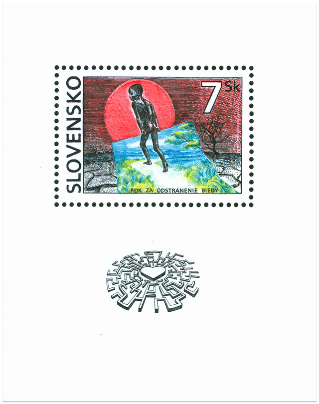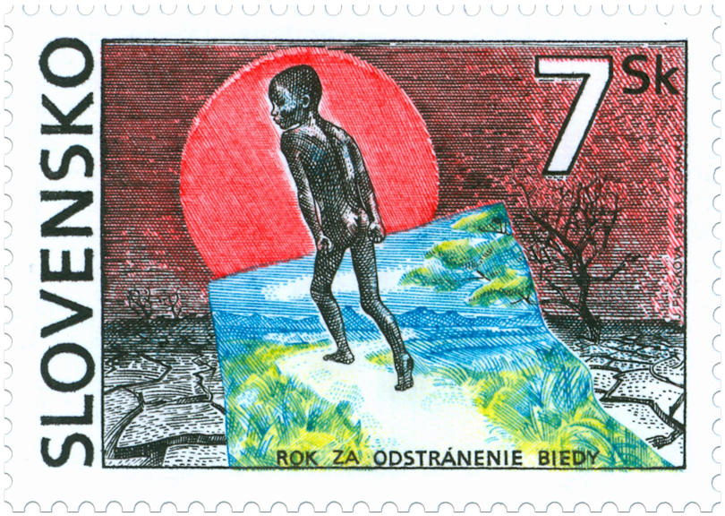 Ministerstvo dopravy, pôšt a telekomunikácií vydalo dňa 15.4.1996 príležitostnú poštovú známku "Rok za odstránenie biedy" o nominálnej hodnote 7 Sk v hárčekovej úprave. Viacfarebná známka zobrazuje spustošenú krajinu, ktorou prechádza postava zanechávajúca za sebou život. V roku 1994 Valné zhromaždenie OSN vyhlásilo rok 1996 za Medzinárodný rok za odstránenie biedy. Jeho cieľom je vytvorenie väčšieho povedomia o skutočnosti, že odstránenie biedy je základom pre upevnenie mieru a zabezpečenia rozvoja. Svetový summit za sociálny rozvoj, za účasti vedúcich predstaviteľov zo 117 krajín, v roku 1995 prijal záväzky týchto krajín k odstráneniu biedy, podpore plnej zamestnanosti a vytváraniu stabilných, bezpečných a spravodlivých spoločností...