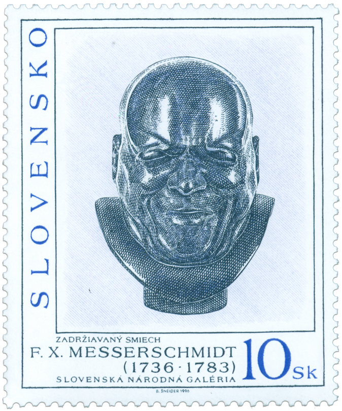 Ministerstvo dopravy, pôšt a telekomunikácií vydalo dňa 5.10.1996 príležitostnú poštovú známku "Franz Xaver Messerschmidt: Zadržiavaný smiech" zo série Umenie o nominálnej hodnote 10 Sk. Na známke pod vyobrazením plastiky sú okrem nominálnej hodnoty texty: " F. X. Messerschmidt (1736-1783), Zadržiavaný smiech, Slovenská národná galéria". Autorom grafickej úpravy emisie je akad. maliar Martin Činovský, autorom rytín emisie je Bohumil Šneider. Viacfarebnú známku o rozmeroch obrazovej časti 40 x 50 mm (na výšku) vytlačila Poštovní tiskárna cenin, a.s., Praha technikou 3-farebnej oceľotlače z plochých platní na tlačových listoch o 4 známkach a 2 nepotlačených kupónoch. Sochár František Xaver Messerschmidt (1736 - 1783) patrí...