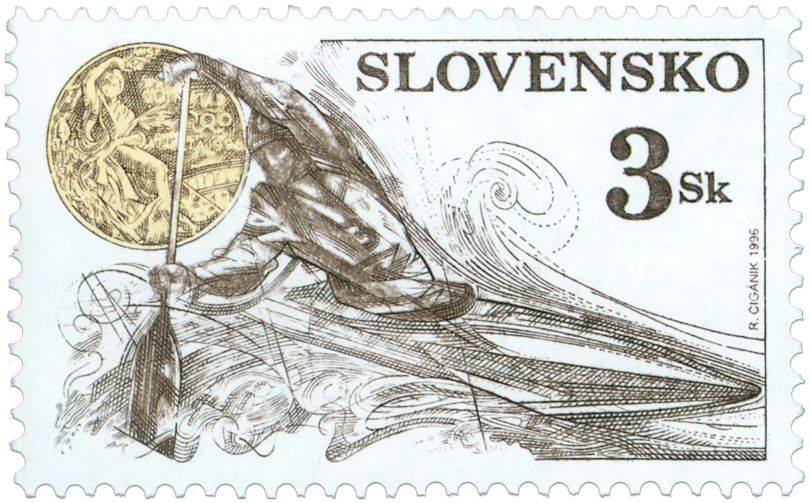 Ministerstvo dopravy, pôšt a telekomunikácií vydalo dňa 18. 12. 1996 príležitostnú poštovú známku " Úspechy slovenských športovcov na OH '96" o nominálnej hodnote 3 Sk. Na dvojfarebnej známke (hnedá a zlatá) je zobrazený olympijský víťaz Michal Martikán pri pretekoch na OH. Autorom návrhov emisie a súčasne aj rytcom je akad. maliar Rudolf Cigánik. Známku o rozmeroch obrazovej časti 23 x 40 mm (na šírku) vytlačila Poštovní tiskárna cenin, a.s., Praha technikou rotačnej oceľotlače v kombinácii s hĺbkotlačou na tlačových listoch o 50 známkach. Prvá účasť športovcov Slovenskej republiky na letných olympijských hrách nám priniesla zlatú, striebornú a bronzovú medailu. Zlato vybojoval...