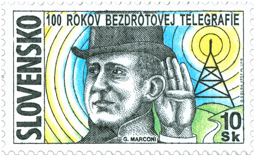 Ministerstvo dopravy, pôšt a telekomunikácií vydalo dňa 15. 4. 1997 príležitostnú poštovú známku " 100 rokov bezdrôtovej telegrafie " s nominálnou hodnotou 10 Sk. Na známke je symbolická kresba s portrétom načúvajúceho G. Marconiho. Autorom výtvarných návrhov emisie je Oliver Solga, rytcom je Martin Srb. Viacfarebnú známku s portrétom načúvajúceho G. Marconiho o rozmeroch obrazovej časti 23 x 40 mm (na šírku) vytlačila Poštovní tiskárna cenin, a.s., Praha technikou rotačnej oceľotlače v kombinácii s hĺbkotlačou na tlačových listoch po 50 známkach. V posledných rokoch devätnásteho storočia sa zaznamenalo niekoľko významných objavov a vynálezov, ktoré podmienili rozvoj bezdrôtovej telegrafie a nadväzne rozvoj...
