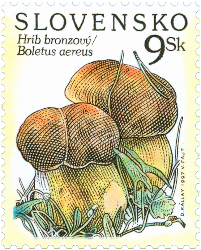 Ministerstvo dopravy, pôšt a telekomunikácií SR vydalo dňa 17. 9. 1997 tri príležitostné poštové známky v nominálnej hodnote po 9 Sk vytlačené na spoločnom hárčeku s námetom huby v sérii Ochrana prírody. Na známkach sú vyobrazené: hríb bronzový, smrčok jedlý a náramkovka cisárska, na medzipolí a okrajoch tlačového listu: mnohokrčka dierkovaná, kyjak useknutý, rôsolovec červený, kozák osikový a kučierka veľká. Autorom výtvarných návrhov emisie je Dušan Kállay, rytcom je Václav Fajt. Viacfarebné známky o rozmeroch obrazovej časti 23 x.30 mm (na výšku) na hárčeku rozmerov 155 x 103 mm vytlačila Poštovní tiskárna cenin, a.s., Praha technikou oceľotlače z plochých platní v...