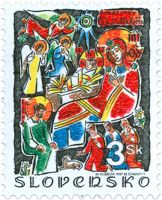 Ministerstvo dopravy, pôšt a telekomunikácií SR vydalo dňa 3. 11. 1997 príležitostnú poštovú známku s vianočným motívom s nominálnou hodnotou 3 Sk. Na známke je zobrazené narodenie v Betleheme. Autorom výtvarných návrhov emisie je Mikuláš Klimčák, rytcom je Martin Činovský. Viacfarebnú známku s rozmermi obrazovej časti 23 x 30 mm (na výšku) vytlačila Poštovní tiskárna cenin, a.s., Praha technikou rotačnej oceľotlače v kombinácii s hĺbkotlačou na tlačových listoch po 50 známkach. Akademický maliar Mikuláš Klimčák - autor výtvarných návrhov emisie, sa narodil r.1921 v Humennom na východnom Slovensku. Študoval na oddelení kreslenia a maľovania na Slovenskej vysokej škole technickej v Bratislave...