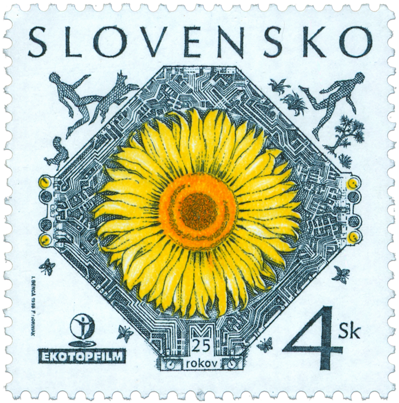 Ministerstvo dopravy, pôšt a telekomunikácií SR vydalo dňa 5. 10. 1998 príležitostnú poštovú známku " Ekotopfilm - 25. rokov" s nominálnou hodnotou 4 Sk. Na známke je symbolická kresba (centrálne umiestnený kvet slnečnice na podklade nákresu plošného spoja, doplňujúce motívy ľudských postáv a zvierat), emblém Ekotopfilmu a text "25 rokov". Autorom výtvarných návrhov emisie je Igor Benca, rytcom je František Horniak. Viacfarebnú známku o rozmeroch obrazovej časti 33 x 33 mm vytlačila Poštovní tiskárna cenin Praha, a.s., technikou rotačnej oceľotlače v kombinácii s hĺbkotlačou na tlačových listoch po 35 známkach . Súčasne bola vydaná obálka prvého dňa vydania vrátane príležitostnej pečiatky...