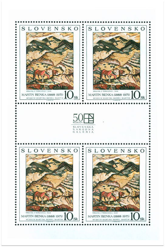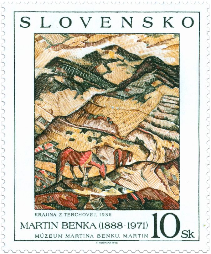 Ministerstvo dopravy, pôšt a telekomunikácií SR vydalo dňa 15. 10. 1998 v sérii Umenie, príležitostnú poštovú známku "Martin Benka: Krajina z Terchovej" s nominálnou hodnotou 10 Sk. Na známke pod vyobrazením diela sú texty "Krajina z Terchovej, 1936, Martin Benka (1888-1971), Múzeum Martina Benku, Martin". Autorom grafickej úpravy emisie je Martin Činovský, rytinu známky a FDC vytvoril František Horniak. Viacfarebnú známku o rozmeroch obrazovej časti 40 x 50 mm (na výšku) vytlačila Poštovní tiskárna cenin, a.s., Praha technikou 5-farebnej oceľotlače z plochých platní na tlačových listoch so 4 ks známok a kupónom. Na kupóne je znak SNG a text "50 rokov...