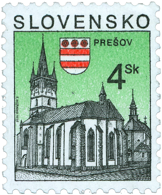 Ministerstvo dopravy, pôšt a telekomunikácií SR vydalo dňa 3. 11. 1998 bežnú výplatnú poštovú známku "Prešov " s nominálnou hodnotou 4 Sk. Na známke sú dominanty historického jadra mesta a mestský erb. Autorom výtvarných návrhov emisie a rytcom známky je Františk Horniak. Viacfarebnú známku o rozmeroch obrazovej časti 19 x 23 mm (na výšku) vytlačila Poštovní tiskárna cenin Praha, a.s., technikou rotačnej oceľotlače v kombinácii s hĺbkotlačou na tlačových listoch po 100 známkach . Súčasne bola vydaná obálka prvého dňa vydania vrátane príležitostnej pečiatky s domicilom Prešov. Autorom návrhu FDC s motívom historickej architektúry je František Horniak. FDC vytlačila tlačiareň Kníhtla...