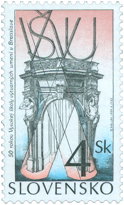 Ministerstvo dopravy, pôšt a telekomunikácií SR vydalo dňa 3. 9. 1999 príležitostnú poštovú známku "50 rokov Vysokej školy výtvarných usmení v Bratislave" s nominálnou hodnotou 4 Sk. Na známke je symbolická kresba a príslušný text. Autorom výtvarných návrhov emisie je akademický maliar prof. Dušan Kállay. Rytinu známky vytvoril Arnold Feke. Viacfarebnú známku o rozmeroch obrazovej časti 23 x 40 mm (na výšku) vytlačila Poštovní tiskárna cenin Praha, a.s., technikou rotačnej oceľotlače v kombinácii s hĺbkotlačou na tlačových listoch po 50 známkach. Súčasne bola vydaná obálka prvého dňa vydania vrátane príležitostnej pečiatky s domicilom Bratislava. Na FDC je symbolická kresba autora prof...