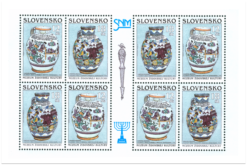 Ministerstvo dopravy, pôšt a telekomunikácií SR vydalo dňa 23.11.1999 dve príležitostné poštové známky série "Múzeum židovskej kultúry na Slovensku" s nominálnou hodnotou 12 Sk a 18 Sk vytlačené na spoločnom priehradkovom liste. Na známkach sú zobrazené exponáty Múzea židovskej kultúry v Bratislave - džbány habánskej keramiky vytvorené pre bratstvo Chevra kadiša v roku 1776 (12 Sk) a v roku 1734 (18 Sk). Súčasne vydala tieto známky Izraelská pošta (Israel Postal Authority). Autorom grafickej úpravy emisie je akad. maliar Martin Činovský. Rytiny známok podľa líniovej rozkresby akad. maliara Martina Činovského vytvorili: František Horniak (12 Sk) a akad. maliar Rudolf Cigánik (18 Sk...