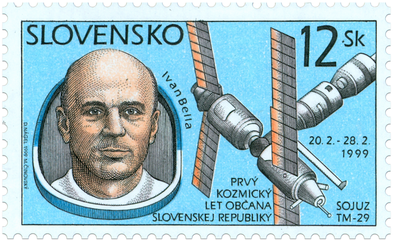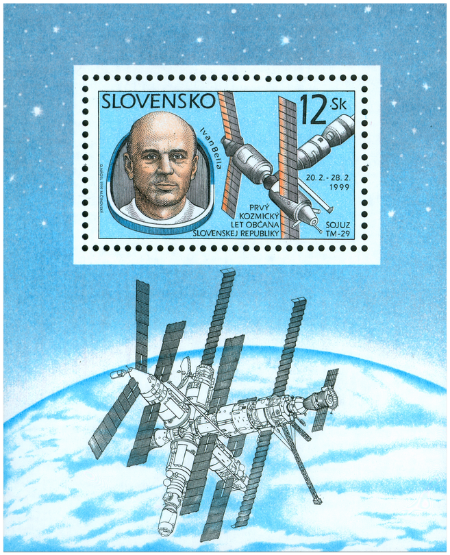 Ministerstvo dopravy, pôšt a telekomunikácií SR vydalo dňa 15. 6. 1999 príležitostnú poštovú známku "Prvý kozmický let občana SR" v hárčekovej úprave s nominálnou hodnotou 12 Sk. Na známke je portrét slovenského kozmonauta Ivana Bellu a časť orbitálnej stanice MIR, na hárčeku je kresba stanice MIR. Autorom výtvarných návrhov emisie je akad. maliar Dušan Nágel. Rytinu známky vytvoril akad. maliar Martin Činovský, rytinu hárčeka vytvoril František Horniak . Viacfarebný hárček rozmerov 70 x 85 mm (na výšku) so známkou o rozmeroch obrazovej časti 40 x 23 mm (na šírku) umiestnenú v hornej časti hárčeka vytlačila Poštovní tiskárna cenin Praha, a.s., technikou...