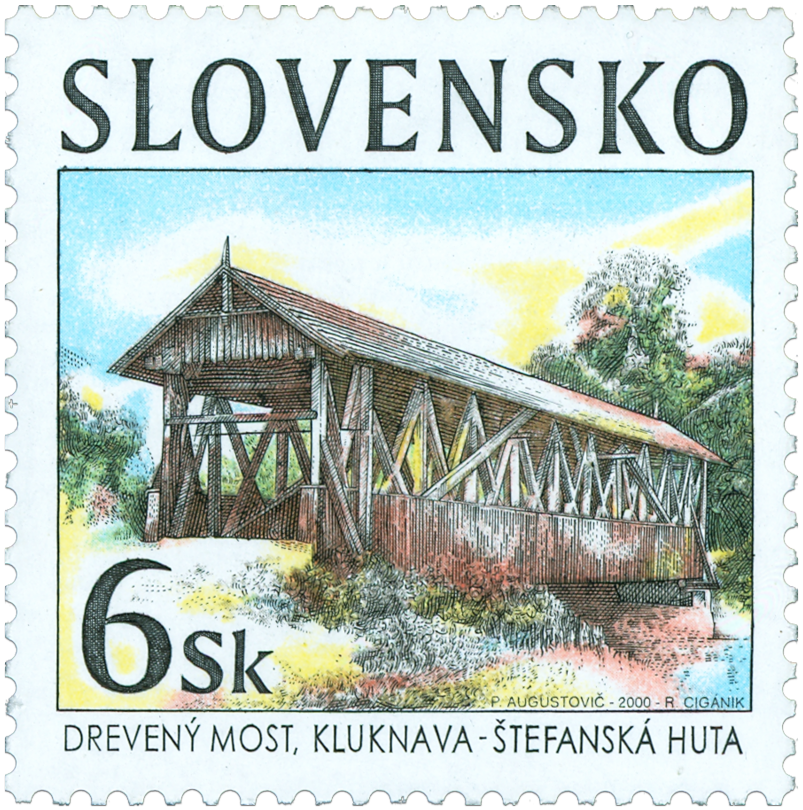 Ministerstvo dopravy, pôšt a telekomunikácií SR vydalo dňa 14. 9. 2000 príležitostnú poštovú známku "Historické mosty - drevený most, Kluknava" z emisného radu Technické pamiatky s nominálnou hodnotou 6 Sk. Na známke je zobrazený jediný zachovaný drevený krytý most na Slovensku. Bol postavený v roku 1832 v Kluknave, vedie cez rieku Hornád. Autorom výtvarných návrhov emisie je akad. maliar Peter Augustovič. Rytiny vytvoril akad. maliar Rudolf Cigánik. Viacfarebnú známku o rozmeroch obrazovej časti 33 x 33 mm vytlačila Poštovní tiskárna cenin Praha, a.s., technikou rotačnej oceľotlače v kombinácii s hĺbkotlačou na tlačových listoch po 35 známok. Súčasne bola vydaná obálka prvého...