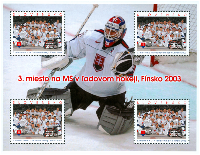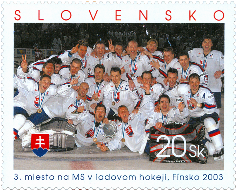 Známka zobrazuje slovenskú hokejovú reprezentáciu na MS v ľadovom hokeji vo Fínsku 2003