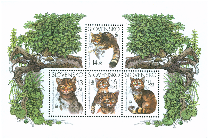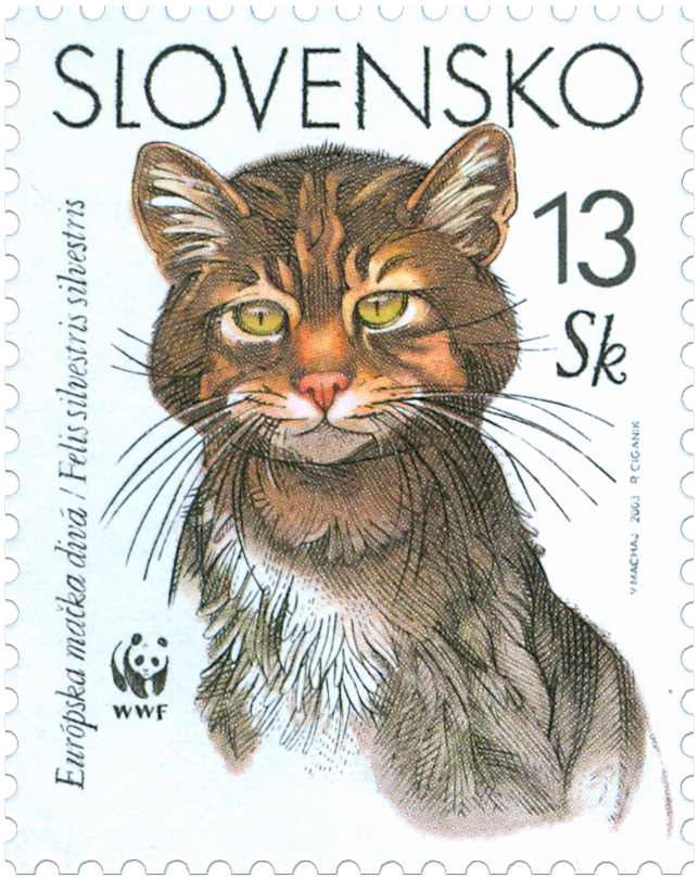 V emisnom rade Ochrana prírody koordinovanom v spolupráci so svetovým fondom na ochranu prírody WWF (World Wide Found For Nature) vychádzajú v hárčekovej úprave 4 príležitostné známky série Európska mačka divá (Felis silvestris silvestris). Známky sú označené logom WWF, na ktorom je panda veľká, a prezentovaná emisia sa tak zaraďuje do svetového filatelistického programu kolekcie známok zobrazujúcich ohrozené živočíšne druhy, ku ktorým patrí aj európska mačka divá. Európsky druh mačky divej bol už v mnohých oblastiach Európy vyhubený a dnes sa vyskytuje len v Škótsku, Nemecku a na Slovensku v hustých lesoch s bohatým podrastom. Toto divé a krásne zviera je...