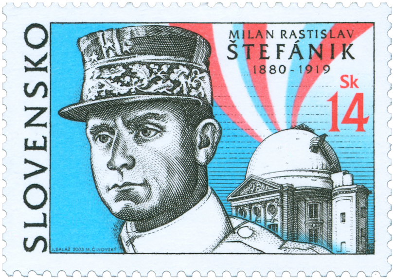 Milan Rastislav Štefánik (21.7.1880 – 4.5.1919) – vedec, diplomat, vojak a politik. Roku 1904 absolvoval štúdium filozofie a astronómie na Karlovej univerzite v Prahe, potom odišiel do Paríža, kde pracoval v hvezdárni Meudon, neskôr v spoločnosti montblanských hvezdární. Absolvoval viacero významných astronomických pozorovaní na rôznych kontinentoch a počas výskumných ciest plnil aj diplomatické úlohy z poverenia francúzskej vlády. Roku 1912 získal francúzske občianstvo. Po vypuknutí prvej svetovej vojny vstúpil do francúzskej armády a ako vojenský pilot sa zúčastnil bojov vo Francúzsku a na Balkáne. Vo francúzskej armáde získal hodnosť brigádneho generála z titulu poslania. Roku 1915 spolu s T. G. Masarykom...