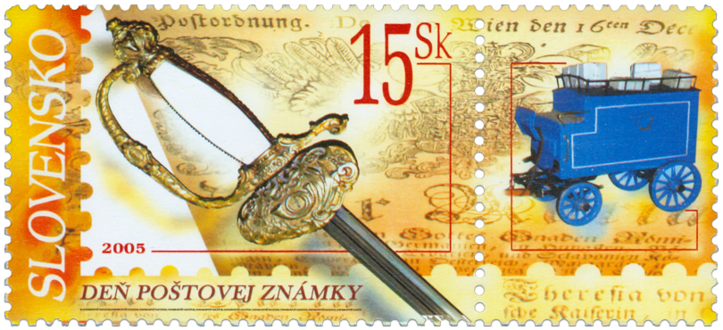 © Slovenská pošta, a.s., 2005 Rovnošatu v poštovej službe používali všetci zamestnanci, zvlášť vyšší úradnici a poštmajstri nosili nádherné a bohato zdobené "gala" uniformy z veľmi kvalitného súkna. Podobu rovnošaty pre úradníkov a ďalších poštových zamestnancov podrobne opisuje Dekrét dvorskej komory vo Viedni z roku 1815. Podľa uvedeného dekrétu rovnošatu doplňoval pozláteny kord. Dochované uniformy, ale i ich doplnky v podobe nevyhnutnej poštovej trúbky, ako aj modely poštových dopravných prostriedkov minulosti patria medzi vzácne zbierky Poštového múzea, ako doklad dejín pošty a poštovníctva na Slovensku. Kord je zaujímavým dokladom, aký dôležitý význam mala rovnošata v posudzovaní spoločenského a sociálneho postavenia zamestnanca...
