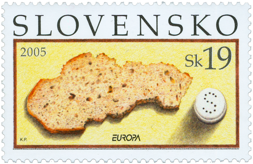 © Slovenská pošta, a.s., 2005 V závislosti od prírodného prostredia Slovenska tvorili v minulosti prevažnú časť stravy jeho obyvateľov rastlinné a mliečne produkty. Mäso v nej pôvodne nehralo významnejšiu úlohu. Pre slovenskú stravu bola typická predovšetkým kyslastá príchuť jedál. Sladké jedlá sa konzumovali menej a väčšinou len príležitostne. Z hľadiska spôsobu prípravy jedál, väčší podiel tvorili varené než pečené jedlá. Za posledných dvesto rokov vývoj slovenskej stravy ovplyvnilo rozšírenie novších poľnohospodárskych plodín – zemiakov, kukurice a cukrovej repy, zdokonalenie mletia obilia a obchod. Z rastlinných produktov základnými jedlami obyvateľov Slovenska boli chlieb, varené cestoviny, kašovité, zeleninové a zemiakové jedlá, polievky, omáčky...